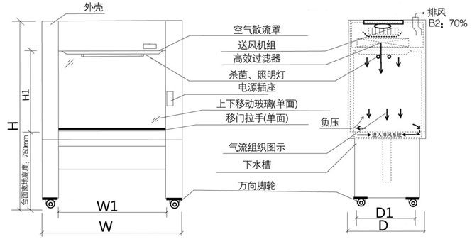 • 半排風(fēng)生物潔凈安全柜